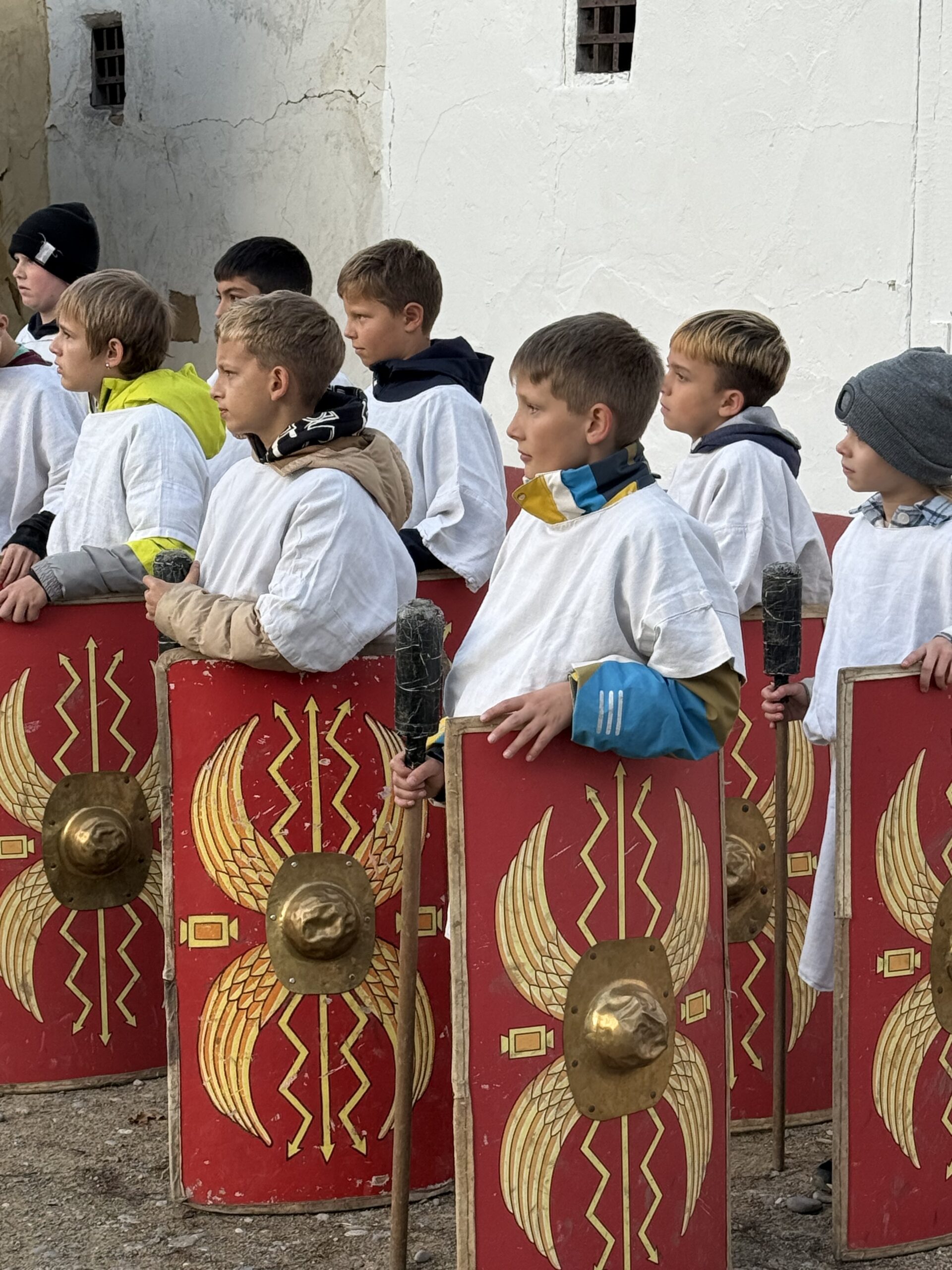 Am späteren Nachmittag ging’s dann so richtig los: Wir durften uns wie römische Soldaten verkleiden! Mit Tuniken, Helmen und Holzschwertern sahen wir richtig römisch aus. Wir übten römisches Kämpfen, kochten nach alten Rezepten und assen zusammen am Feuer. Es schmeckte erstaunlich gut.