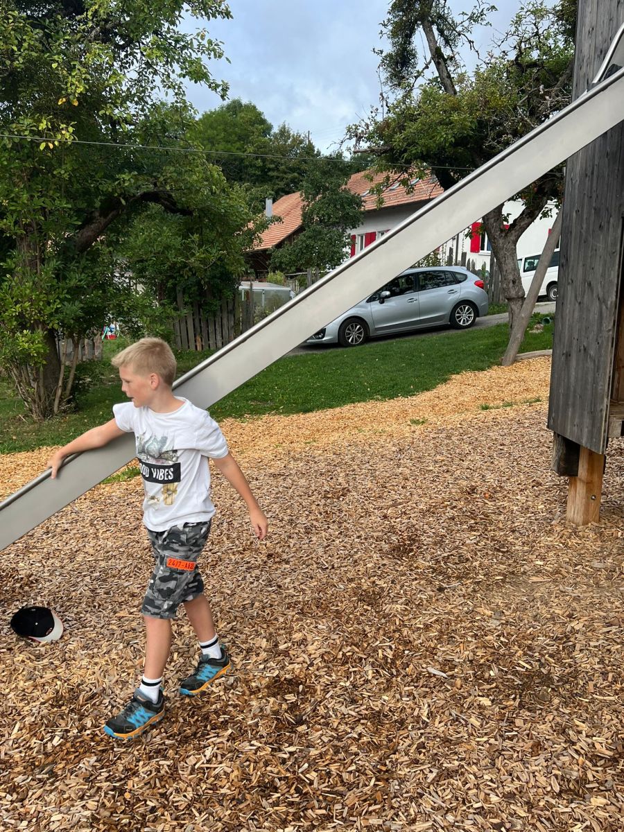 Wir legten eine grosse Pause auf dem Spielplatz Hupp Lodge in Wisen ein. Hier konnten wir uns so richtig austoben und all die Energie, die sich während dem anfänglichen Fussmarsch gestaut hatte, freisetzen. Die Schaukeln, Rutschen und Klettergerüste wurden von uns erobert, als gäbe es kein Morgen mehr. Doch nicht nur das Spielen stand im Vordergrund. Wir genossen auch die Ruhe und die frische Luft, die uns umgab, während wir auf den Bänken sassen und uns ausruhten.