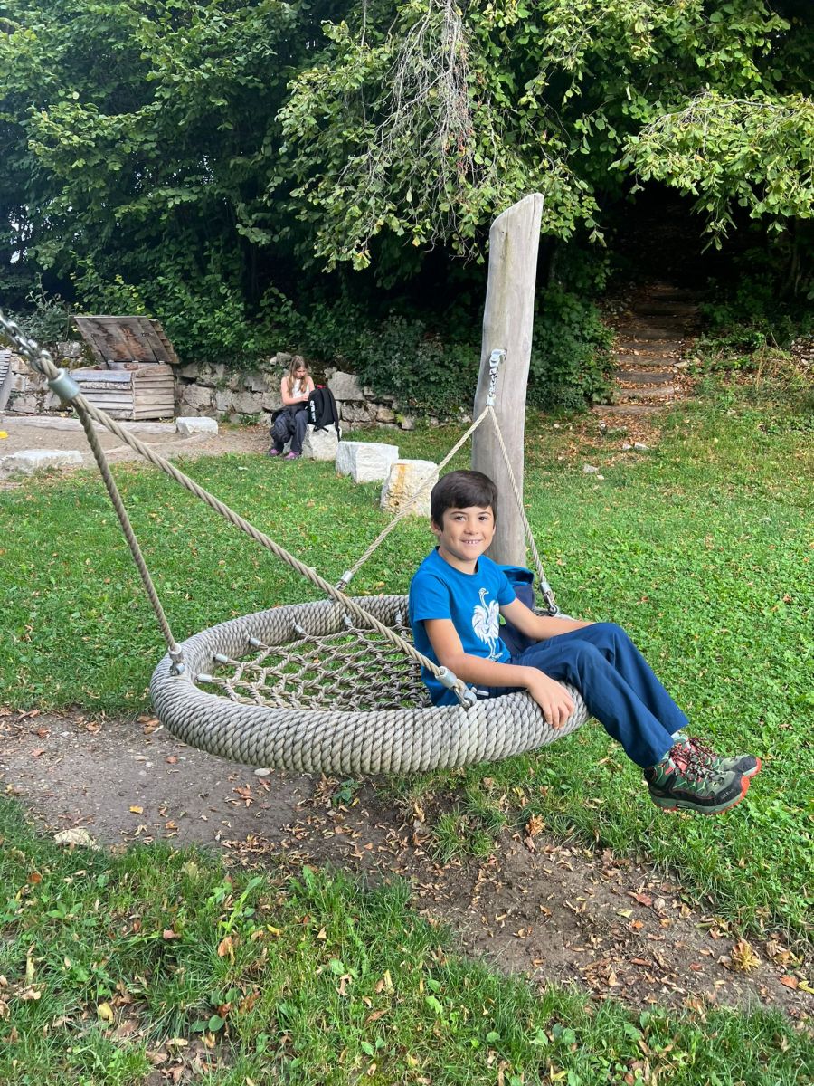 Wir legten eine grosse Pause auf dem Spielplatz Hupp Lodge in Wisen ein. Hier konnten wir uns so richtig austoben und all die Energie, die sich während dem anfänglichen Fussmarsch gestaut hatte, freisetzen. Die Schaukeln, Rutschen und Klettergerüste wurden von uns erobert, als gäbe es kein Morgen mehr. Doch nicht nur das Spielen stand im Vordergrund. Wir genossen auch die Ruhe und die frische Luft, die uns umgab, während wir auf den Bänken sassen und uns ausruhten.
