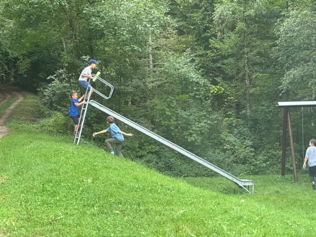 Wir legten eine grosse Pause auf dem Spielplatz Hupp Lodge in Wisen ein. Hier konnten wir uns so richtig austoben und all die Energie, die sich während dem anfänglichen Fussmarsch gestaut hatte, freisetzen. Die Schaukeln, Rutschen und Klettergerüste wurden von uns erobert, als gäbe es kein Morgen mehr. Doch nicht nur das Spielen stand im Vordergrund. Wir genossen auch die Ruhe und die frische Luft, die uns umgab, während wir auf den Bänken sassen und uns ausruhten.