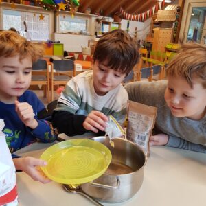 Wir haben in verschiedene Zirkusberufe hineingeschnuppert und festgestellt, dass das viele Üben auch ganz schön anstrengend sein kann. Aber es hat sich gelohnt und wir haben uns sehr über unsere Fortschritte gefreut. Neben dem Einstudieren der einzelnen Nummern unseres kleinen Weihnachtszirkus haben wir auch mit den Vorbereitungen für unseren Pausenkiosk begonnen. Tüten für Popcorn wurden gefaltet, gebrannte Mandeln wurden hergestellt, Trinkbecher mit Sternen bestempelt und aus braunen und roten Schokoladenkugeln haben wir Rentiernasen abgezählt und verpackt.
