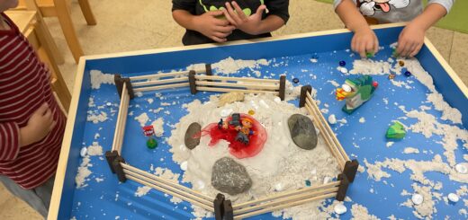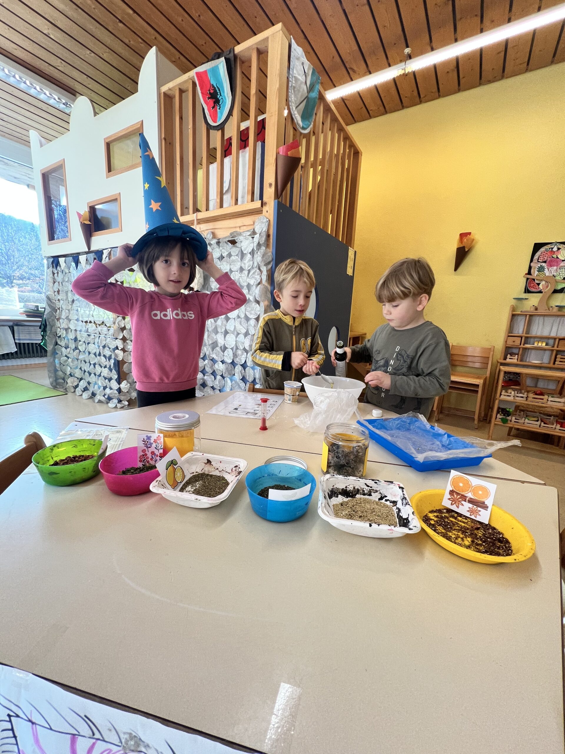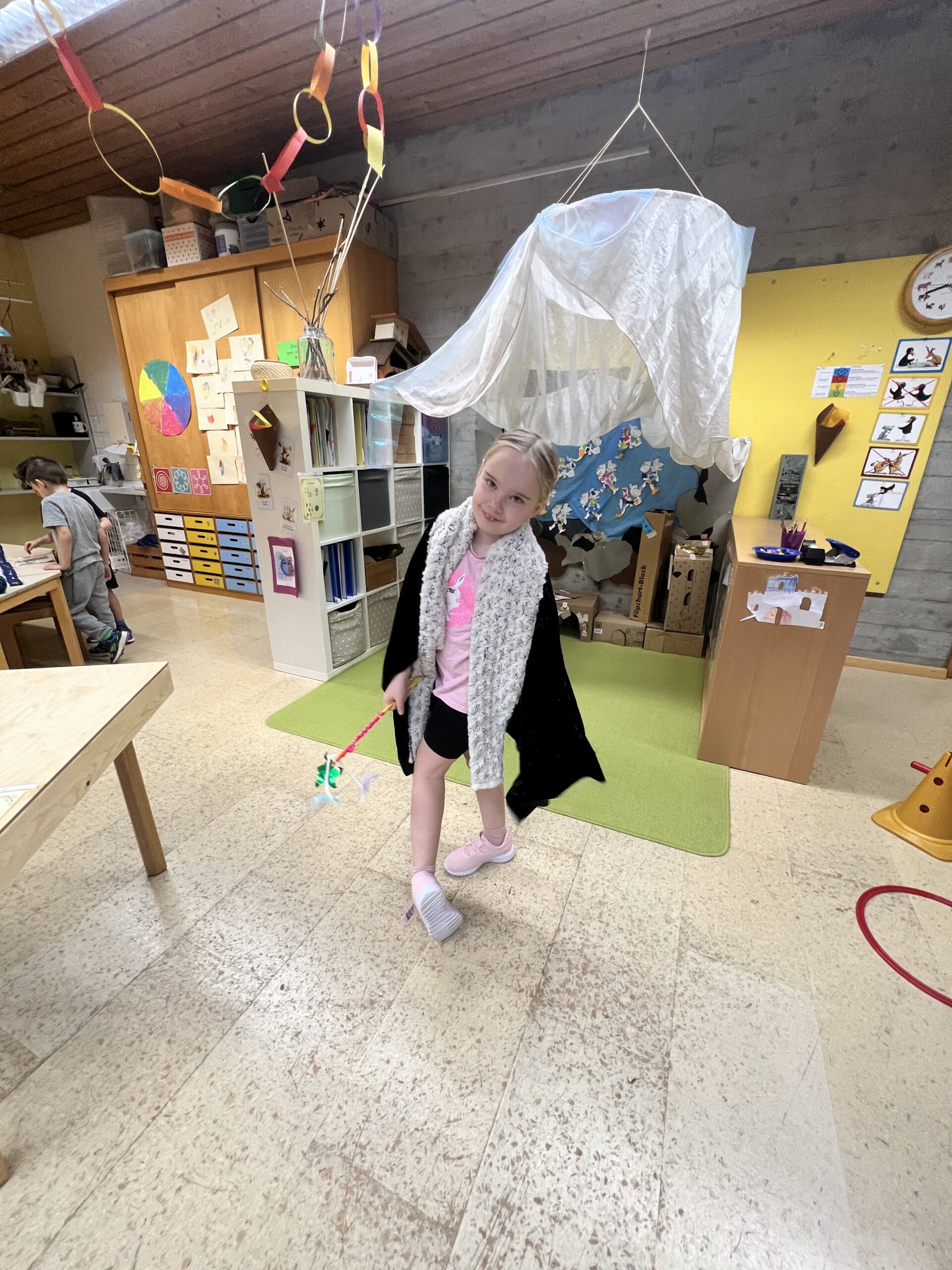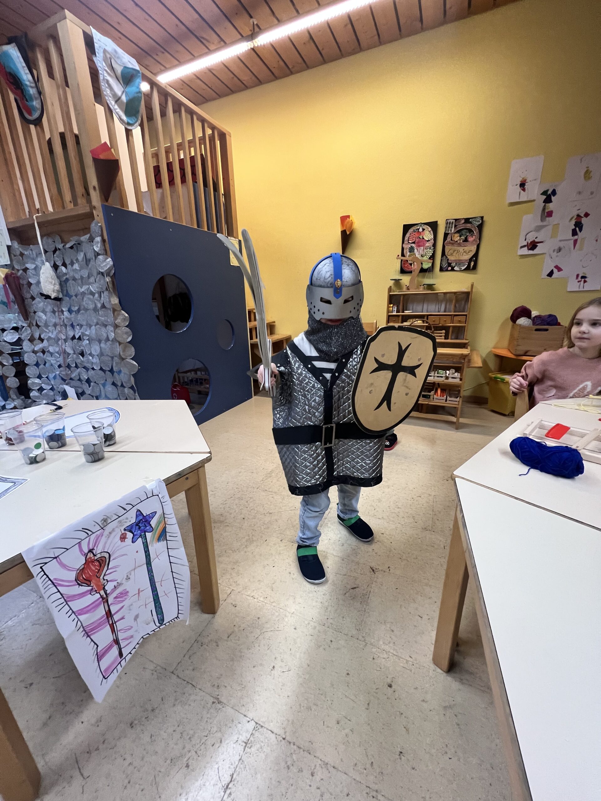 Wer in den letzten Wochen den Kindergarten betreten hat, wäre wohl überrascht gewesen: Der Kindergarten verwandelte sich nämlich in eine lebendige Burglandschaft, in der die Kinder tief in die faszinierende Welt der Ritter und Burgherrinnen eintauchten. Mit leuchtenden Augen schlüpften sie in ihre Rollen, legten Umhänge an, setzten Helme auf und wurden selbst zu tapferen Beschützern, klugen Burgbewohnerinnen oder edlen Reiterinnen. Dabei ging es nicht nur ums Verkleiden und Spielen – ganz nebenbei lernten die Kinder auch, welche Aufgaben Ritter früher hatten, wie das Leben auf einer Burg organisiert war und weshalb Mut, Hilfsbereitschaft und Zusammenhalt wichtige Rittertugenden sind. Doch nicht nur Ritter und Burgherrinnen bevölkerten das Schloss: Auch geheimnisvolle Zauberer hielten Einzug in die Burgmauern. Mit staunenden Augen übten die Kinder verschiedene Zaubertricks, probierten magische Kunststücke aus und verwandelten sich selbst in kleine Meister der Zauberei.