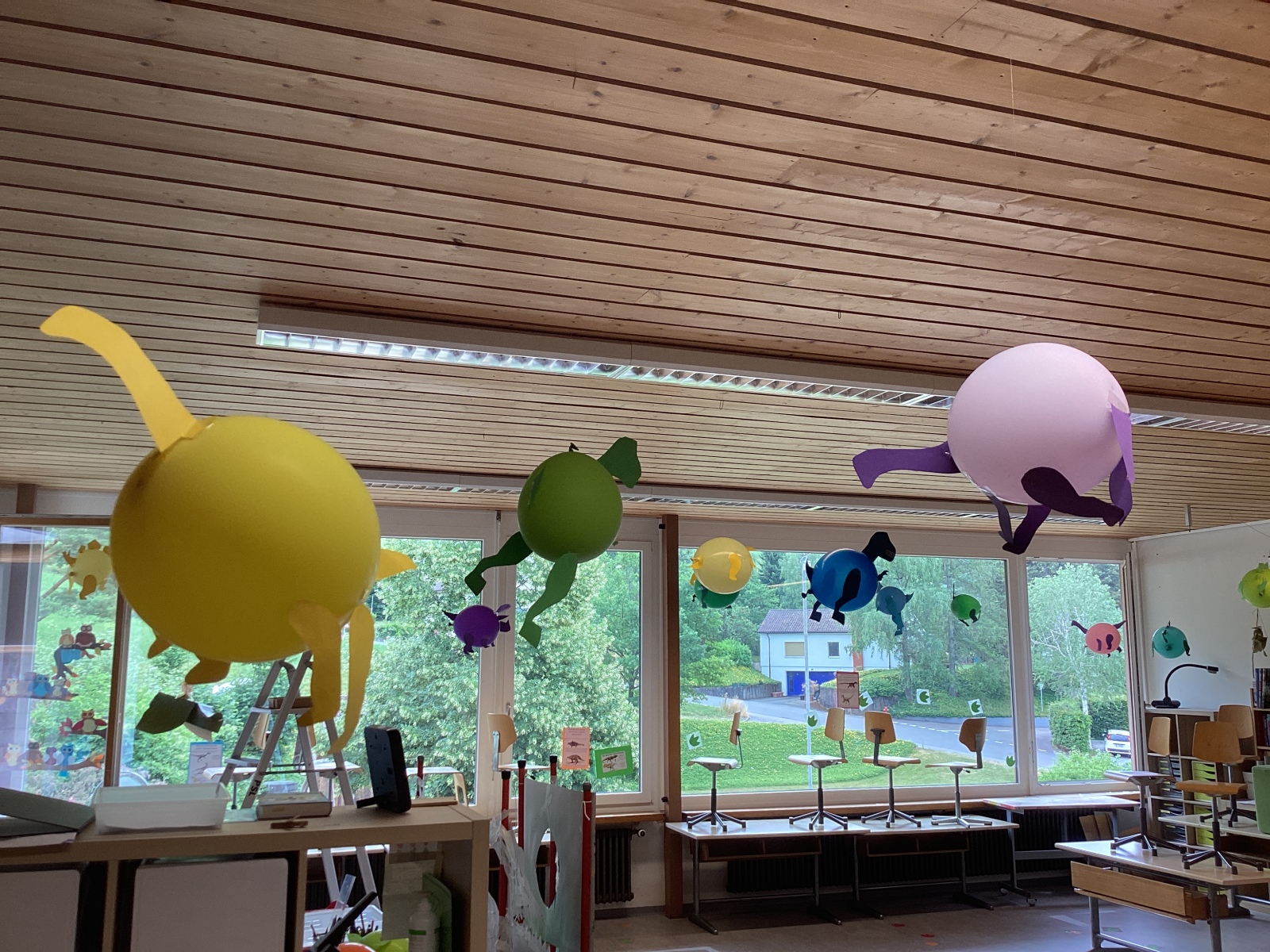 Nach all diesen tollen Darbietungen war es aber noch nicht vorbei. In den Klassenzimmern haben die Schülerinnen und Schüler mit ihren Klassenlehrerinnen Workshops vorbereitet. So konnte man danach noch Badesalz oder Schiffchen basteln. Dinos in verschiedenen Varianten bastelt oder sich bei der Fotowand von einem fressen lassen. Katapulte schiessen oder Kegeln wie bei den Galliern. Oder sich Schlümpfe auf die Haut zeichnen lassen und sein Schlumpfwissen auf die Probe stellen.